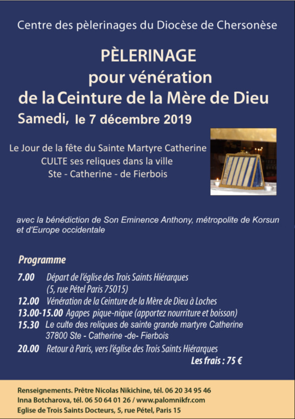 Contacts: prêtre Nicolas Nikichine ou Madame Inna Botcharova